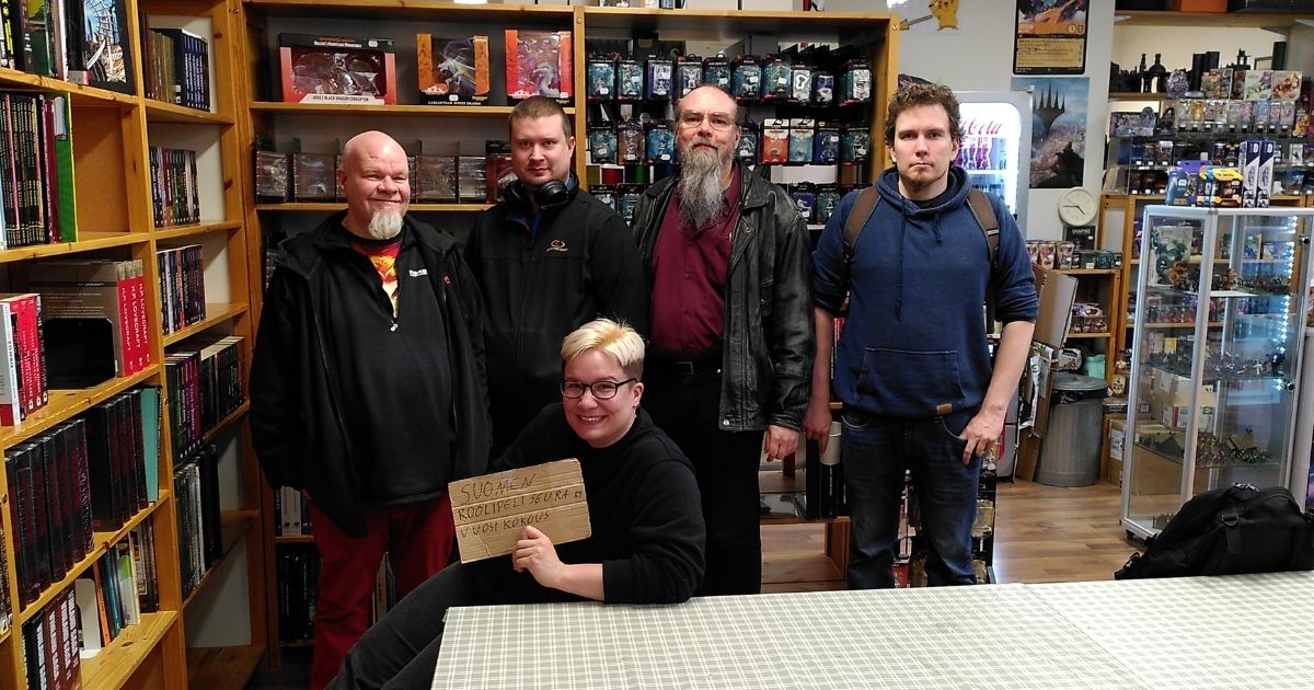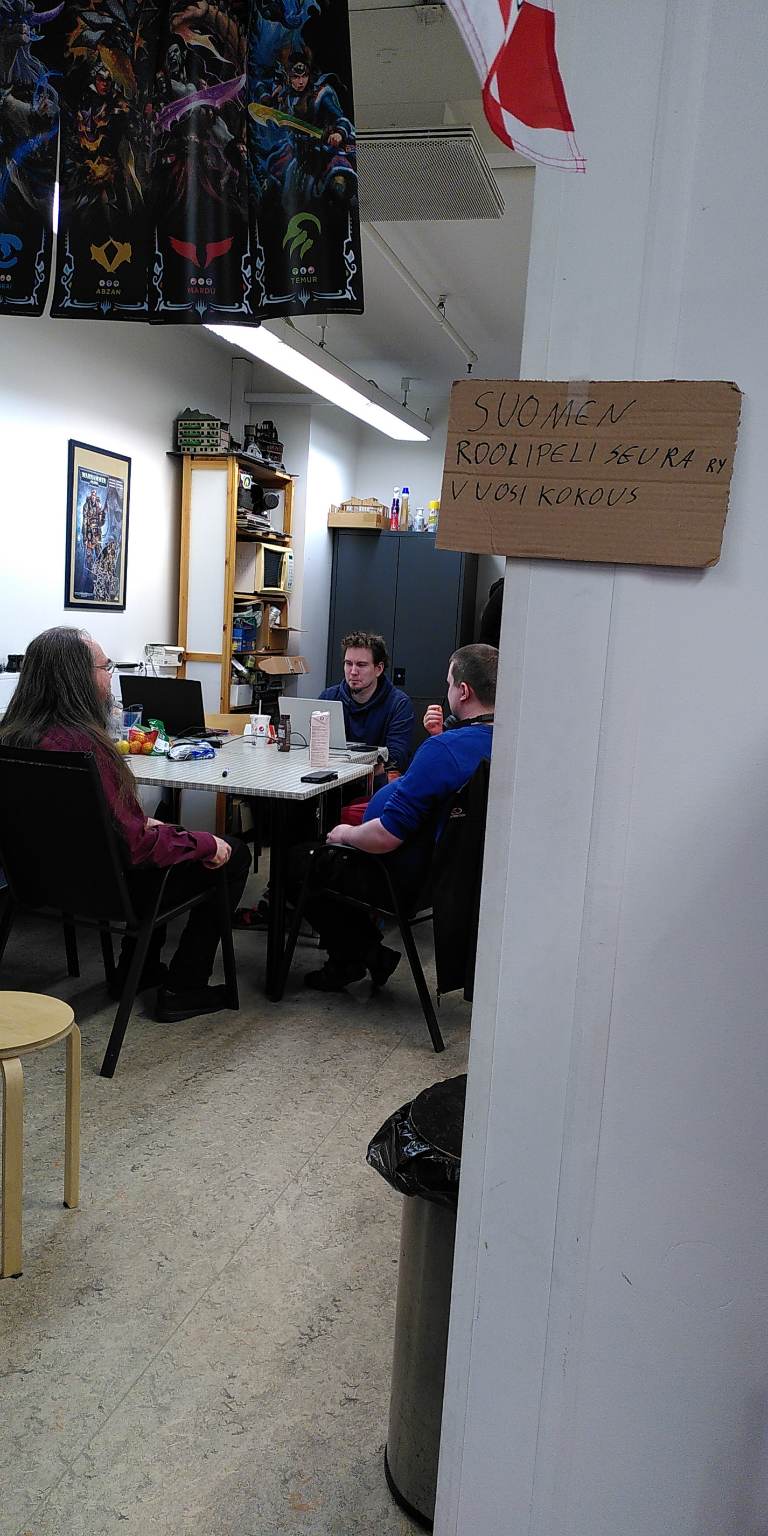 Seuran vuosikokous järjestettiin Jyväskylässä 11.10.2025. Tällä Valon Kaupunkiin suuntautuneella ekskursiollamme nautimme paikallisen Fantasiapelit -liikkeen vieraanvaraisuudesta ja paikallisesti moneen kertaan parhaaksi äänestetystä thairuokapaikan JokoThain herkuista. Kokoustelun ja herkuttelun päätteeksi pelattiin vielä vauhdikas Twist and Turn -seikkailu alakaupungilla, Suomen suurimmassa Hemingway’sissä. Baarin arkisemmat asiakkaat saivat ihmetellä seuran aktiivien ja jyvässeudun roolipeliharrastajien hersyvää pelaamista. Kolme konnaa suoritti haltiashakki-figunappuloiden ryöstökeikan jossa muunmuassa soitettiin amispoppia rumpurattisella shamaanin saabilla ja paettiin onnistuneen rötöksen päätteeksi Taylor Swiftin yksityiskoneella Bahamalle. Tämä kertoo siitä, että seuran alkuvuosien kirous on siis katkaistu: vuosikokouksien yhteydessä on nyt ehditty jo useampana vuotena oikeasti pelaamaankin niitä roolipelejä eikä vain puhumaan niistä!